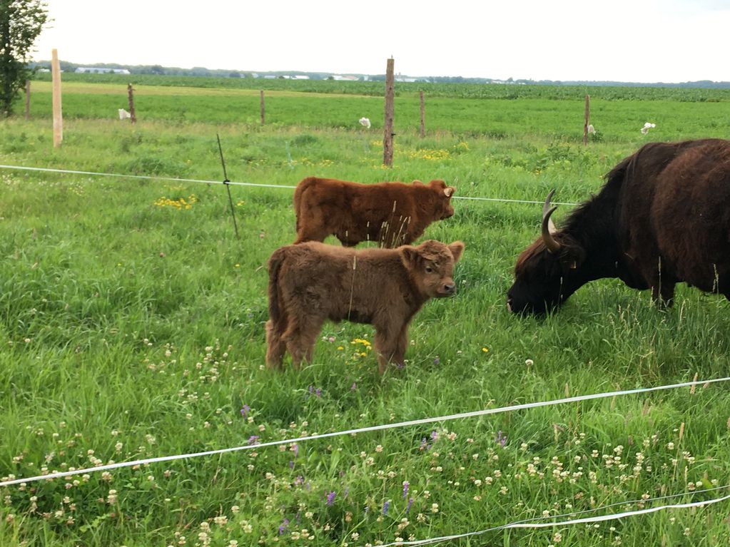 Il n'est pas rare de voir une des vaches entourée de plusieurs petits pendant que les autres mères vaquent à leurs occupations en toute confiance plus loin. Parfois, nous avons pu voir une de nos taures, qui n'a jamais eu de petit, jouer à la gardienne en assurant la surveillance de plusieurs petits.